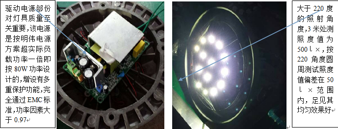 最大輸出功率為50W的廣角型LED防爆平臺燈,所配置的電源為輸出最大功率可達80W的電源,為燈具保持長期持久使用護航: