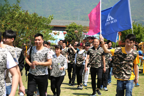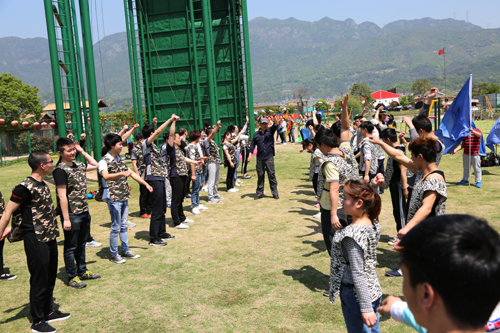 恒盛企業大旗迎風咧咧招展,恒盛人興致勃勃的列隊步入場的,立刻引起了當天在該拓展基地集訓的其它單位的注目。