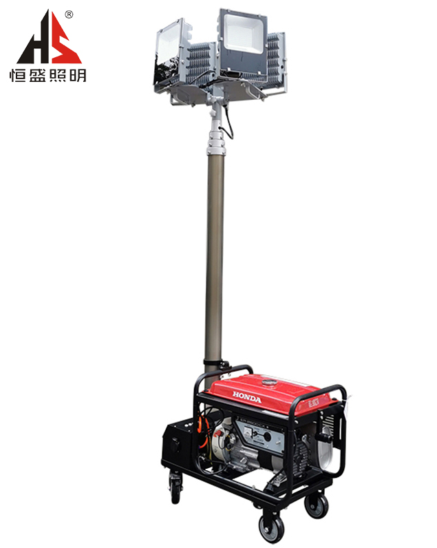 移動照明燈組又叫全方位自動升降泛光工作燈、多功能升降照明燈塔或者自發電式移動照明燈組等,采用模塊化設計,由高速移動底盤、靜音機組、高強度升降桿和照明燈組成,高效能LED兩支或四支燈頭交錯照射,360度全景照明,可高達幾萬流明的強光,推車式發電機組、超長使用時間;專用防護箱可防止水分、粉塵、溫度及撞擊等給儀器設備帶來的破壞,功能強大的應急、救援、照明產品。下面恒盛照明帶大家詳細了解升降式移動照明燈組。